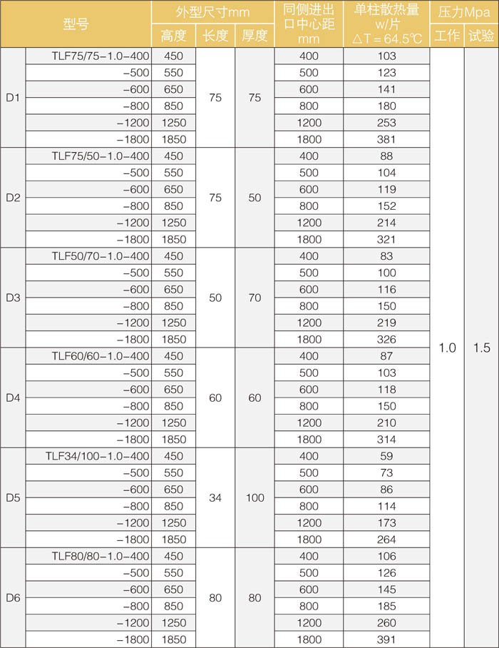 銅鋁復(fù)合暖氣片[明系列]主要技術(shù)參數(shù)表