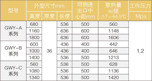 鋼制衛(wèi)浴暖氣片主要技術(shù)參數(shù)表